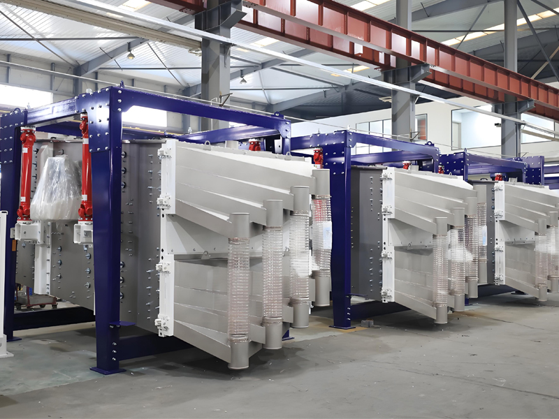 After the rectangular swing screen is started, the shaking body of the screen machine, namely the screen box, moves back and forth under the action of inertia force. The screen box drives the screen surface to shake periodically, forcing the materials on the screen box to perform directional jumping motion together with the screen box. During this period, materials smaller than the screen surface aperture fall to the lower layer through the screen aperture, becoming undersized materials. Materials larger than the screen surface aperture continue to roll and jump motion before being discharged from the discharge port, thus completing the screening work.