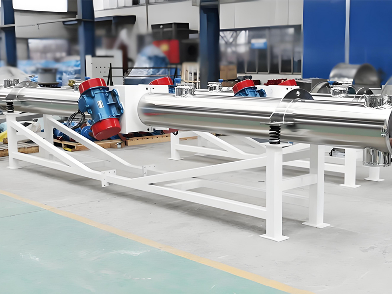The basic working principle of a tubular vibrating feeder is as follows: after the equipment is started, two vibrating motors or exciters of the same model and specifications, which are symmetrically arranged, run synchronously in opposite directions. The excitation force generated by them is transmitted to the entire vibrating body—the feeding trough—through the transmission body—motor or exciter base, causing the trough to vibrate periodically. As a result, the material in the trough moves in a directional jumping motion toward the discharge end, thus completing the material conveying operation.