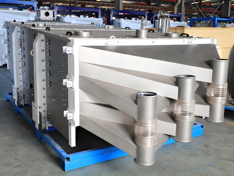 After the rectangular swing screen is started, the shaking body of the screen machine, namely the screen box, moves back and forth under the action of inertia force. The screen box drives the screen surface to shake periodically, forcing the materials on the screen box to perform directional jumping motion together with the screen box. During this period, materials smaller than the screen surface aperture fall to the lower layer through the screen aperture, becoming undersized materials. Materials larger than the screen surface aperture continue to roll and jump motion before being discharged from the discharge port, thus completing the screening work.